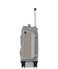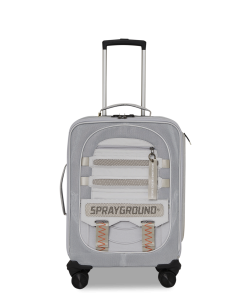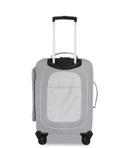 EXTERIOR:100 % Polyvinyl Chloride Shell – AKA 100% Faux Leather H: 19.5” x W: 14.5“x D: 7” YKK® Zipper FrameFront Exterior PocketEmbossed LogoFaux leather top & side handles 4 Dual Spinning Recessed WheelsTelescope Adjustable Handle – 2 positions INTERIOR:Multiple Pockets and Compartments for Maximum Organization3 Zippered Pocket4 Mesh PocketsShark Print Satin LiningMesh organizer pockets Fastening StrapsNylon Zippers with Metal Hardware