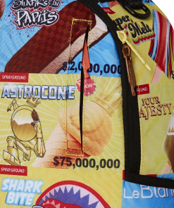 Dimensions: 18″ x 6″ x 11.5″ • Front zipper pocket • Side pockets • Zippered Stash pocket • Separate velour sunglass compartment • Ergonomic mesh back padding • Adjustable Straps for custom sizing • Gold zippers with metal hardware • Metal “Sprayground Authentic” badge • Slide through back sleeve connects to carry-on luggage to free your hands