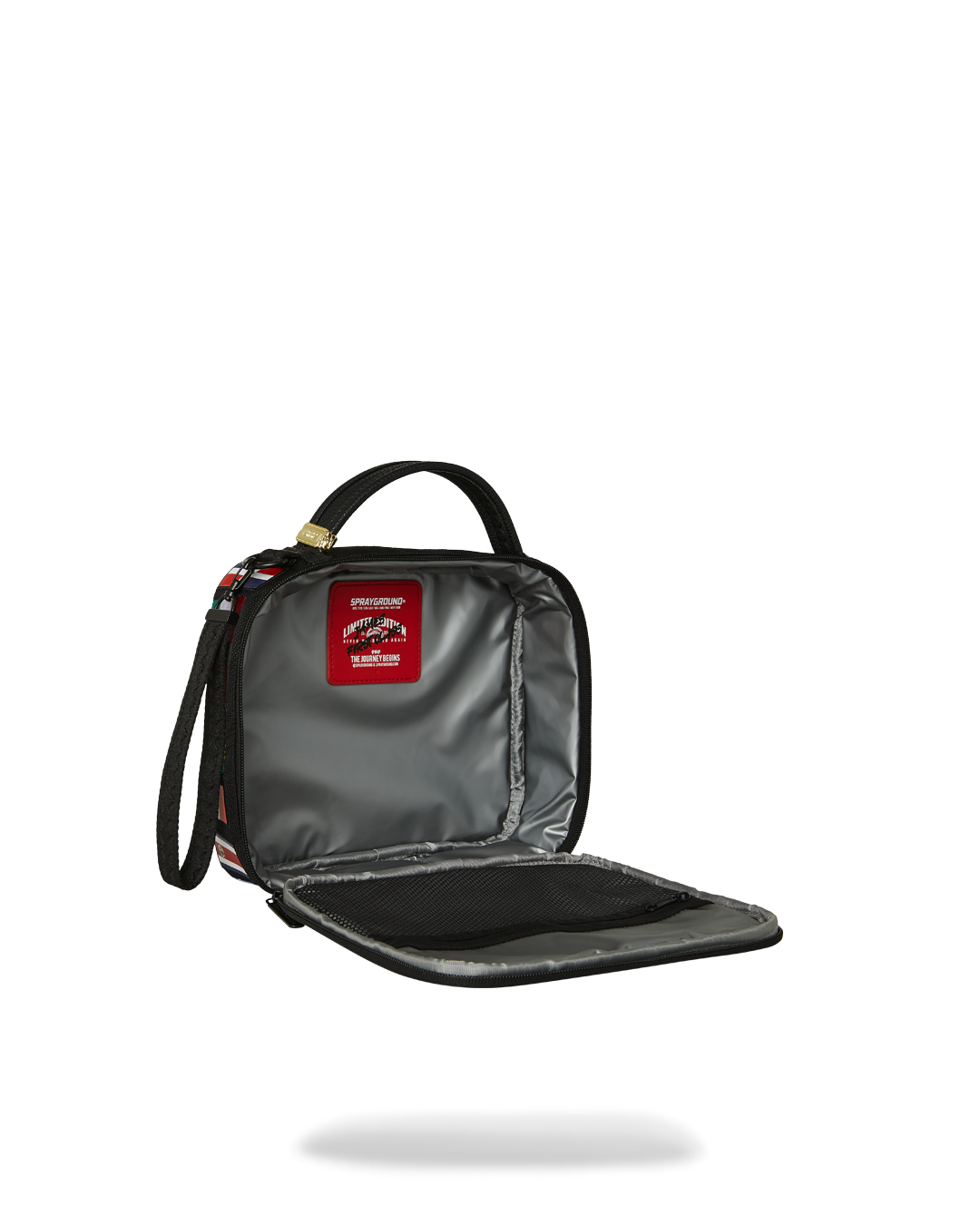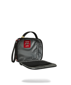 ExteriorDimensions: 8.5″ x 3″ x 8.5″ • Double zipper opening • Top handle • Removable side handle • Red zippers with metal hardware • Zippered stash pocket