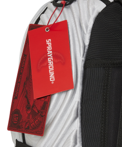 Dimensions: 18″ x 6″ x 11.5″ • Front zipper pocket • Side pockets • Zippered Stash pocket • Separate velour sunglass compartment • Ergonomic mesh back padding • Adjustable Straps for custom sizing • Gold zippers with metal hardware • Metal “Sprayground Authentic” badge • Slide through back sleeve connects to carry-on luggage to free your hands