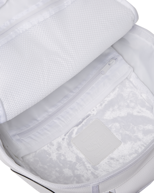 Dimensions: 18″ x 6″ x 11.5″ • Front zipper pocket • Side pockets • Zippered Stash pocket • Separate velour sunglass compartment • Ergonomic mesh back padding • Adjustable Straps for custom sizing • Gold zippers with metal hardware • Metal “Sprayground Authentic” badge • Slide through back sleeve connects to carry-on luggage to free your hands